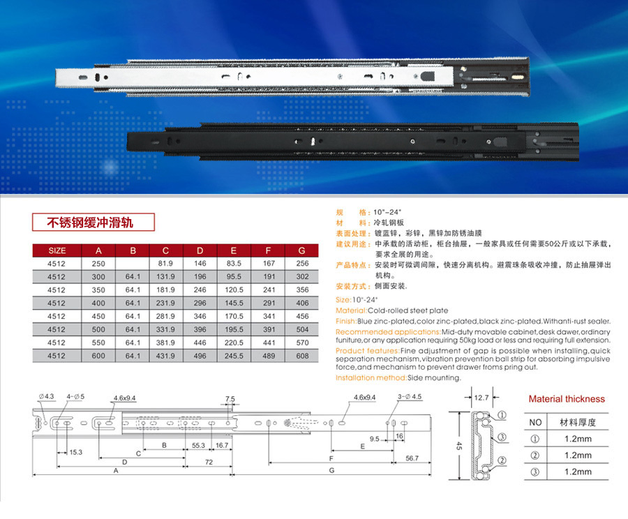 不锈钢缓冲滑轨